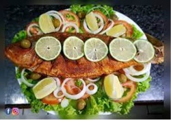 PEIXE FRITO COM FRITAS (BAIÃO, SALADA, BATATA DOCE E BATATA FRITA)